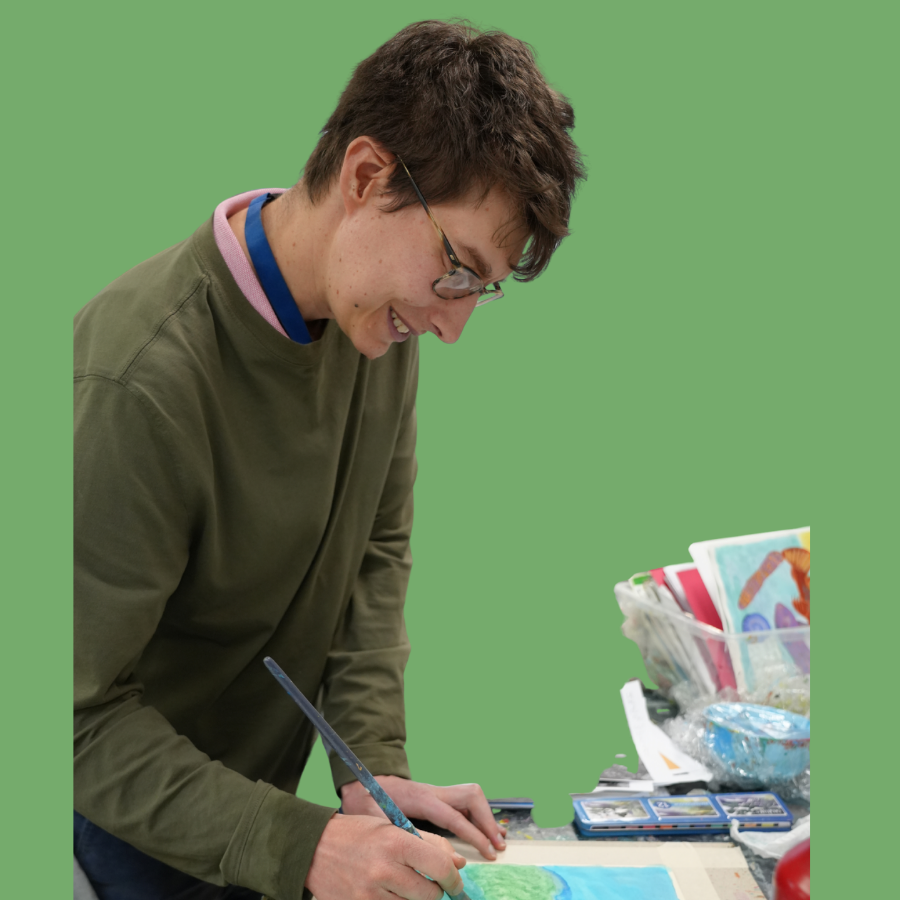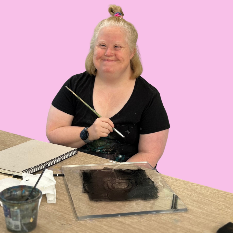 Sarah is a multidisciplinary artist who is eager to always try new techniques. She shows bravery in the studio environment, with her ability to explore new methods of making. She expresses her talent through various mediums such as painting, collage, and digital artwork. Sarah is enthusiastic about forests and trees in particular and looks for opportunities to celebrate the wonder she sees and depicts with a sophisticated understanding of colour.