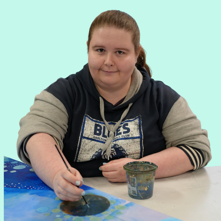 Mya is a Wurundjeri artist, bringing her Aboriginal heritage to life through painting. She explores her culture by exploring bright pigmented colours, expressing her own artistic flare through the added use of textures in her paintings.