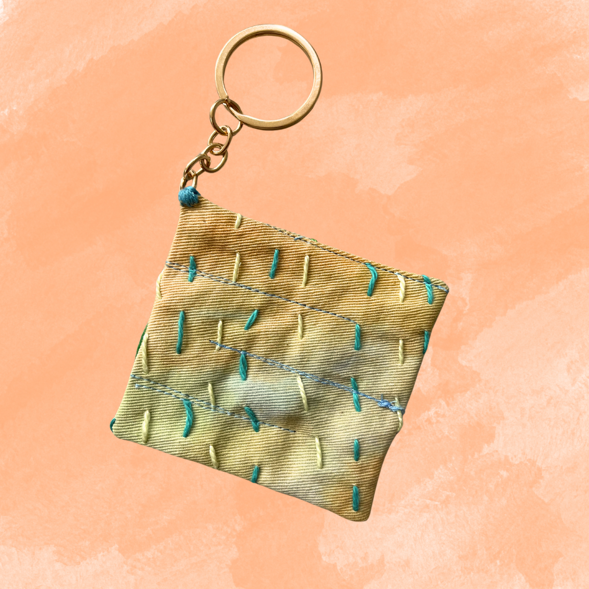 Expertly embroidered using recycled fabric, these innovative fidget squares come in two convenient sizes: a large square and a small keychain attachment.