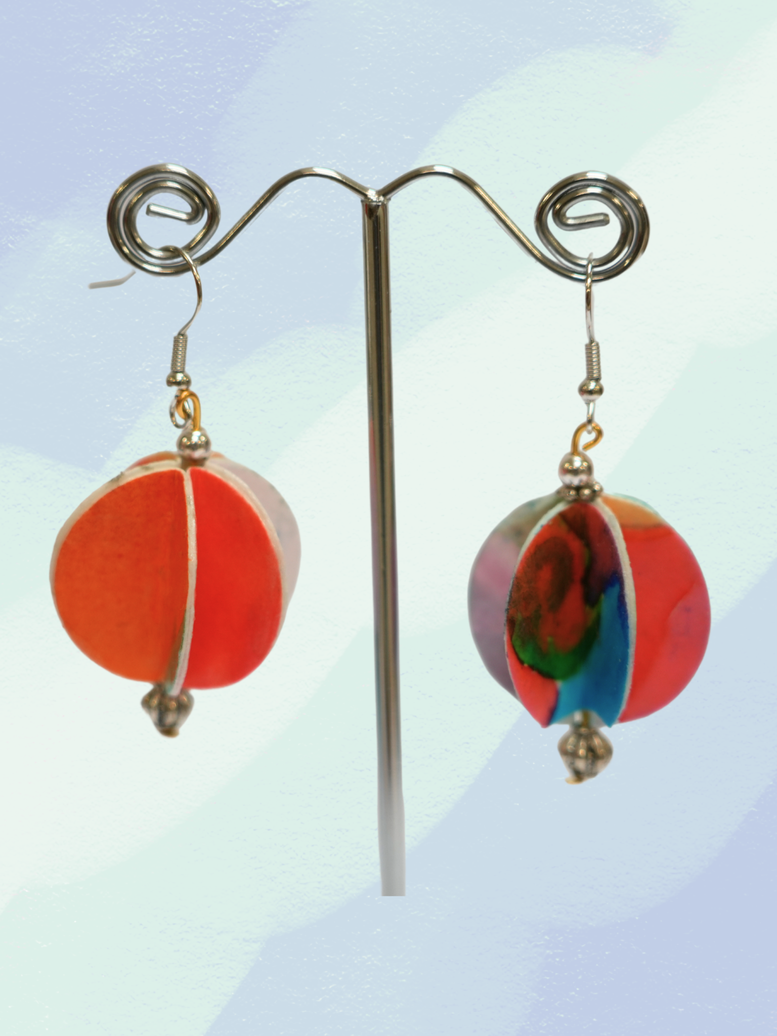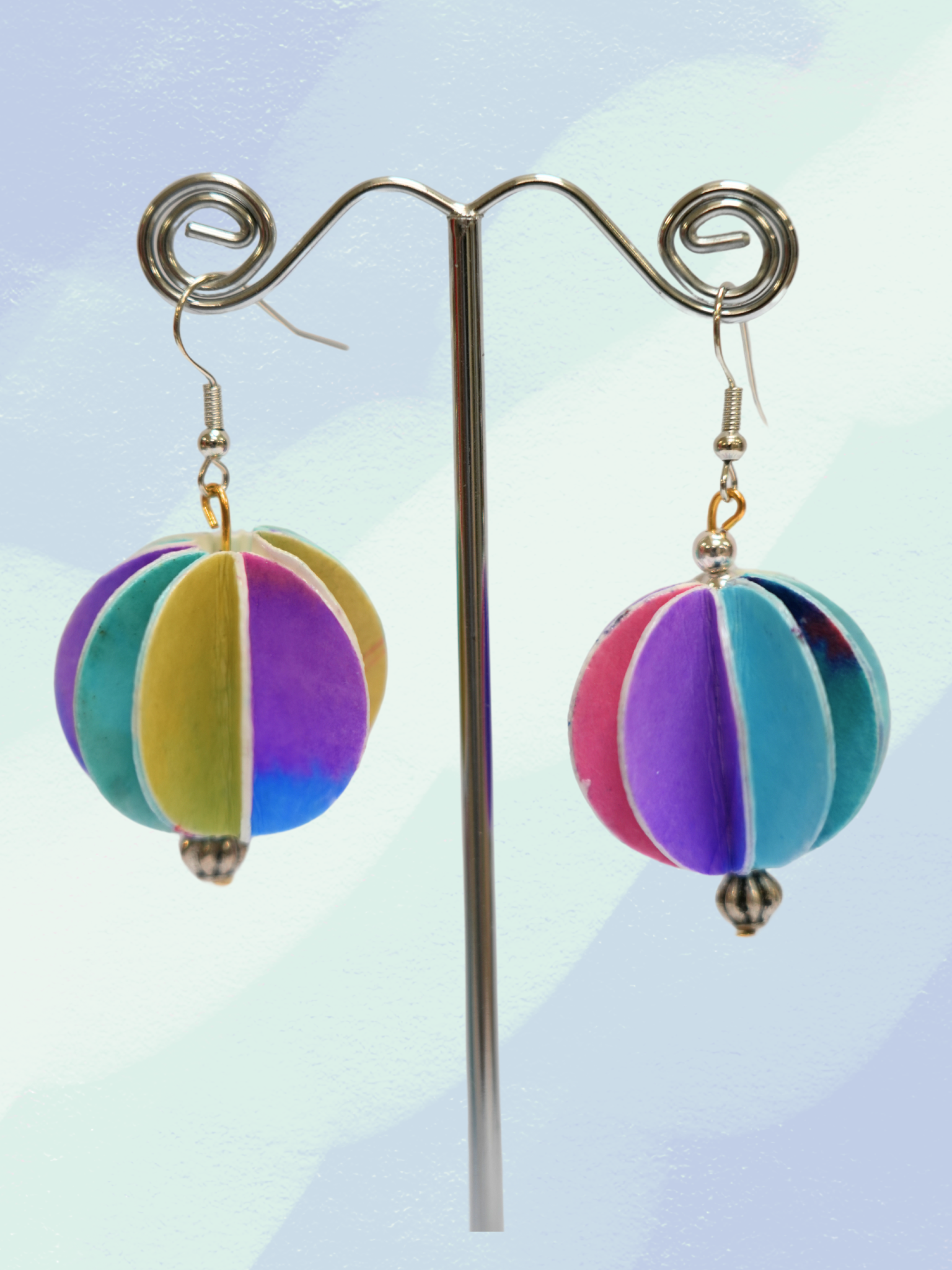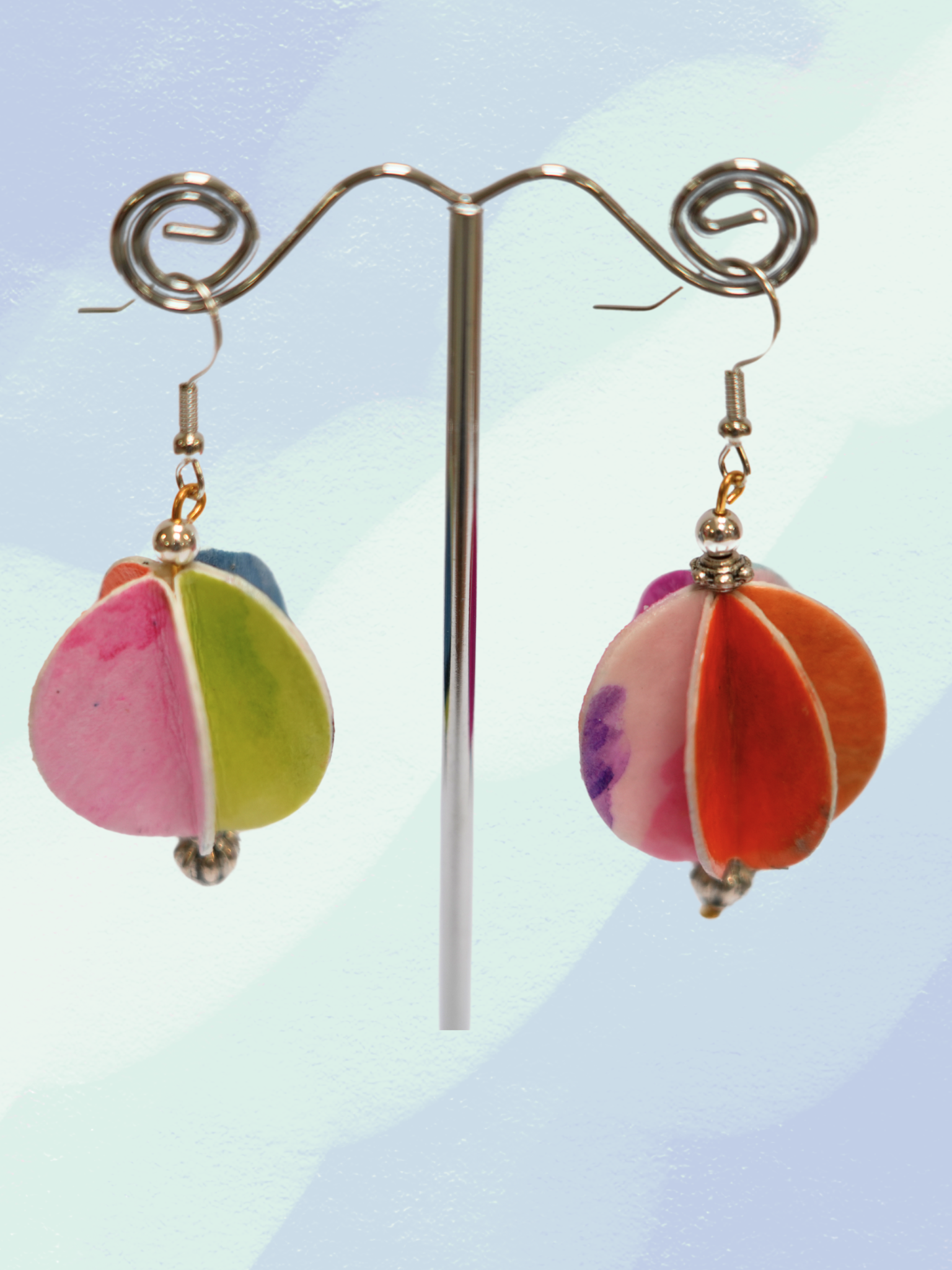 Handmade paper earrings that utilise watercolour paintings made by the artists then transformed into beautiful wearable artworks. They spin and are great to fidget with.