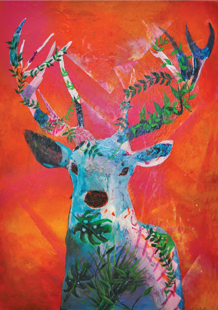 An A2 poster of an original painting titled "Red Deer" by Jordan Dymke.